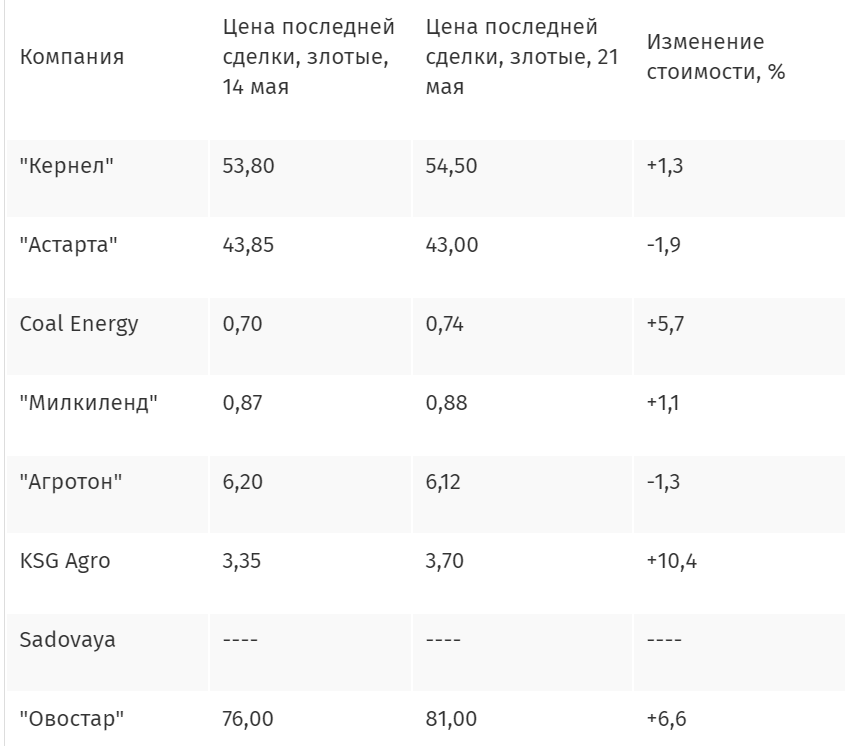 Акции украинских компаний на Варшавской фондовой бирже продолжали расти с 14 по 21 мая 2021