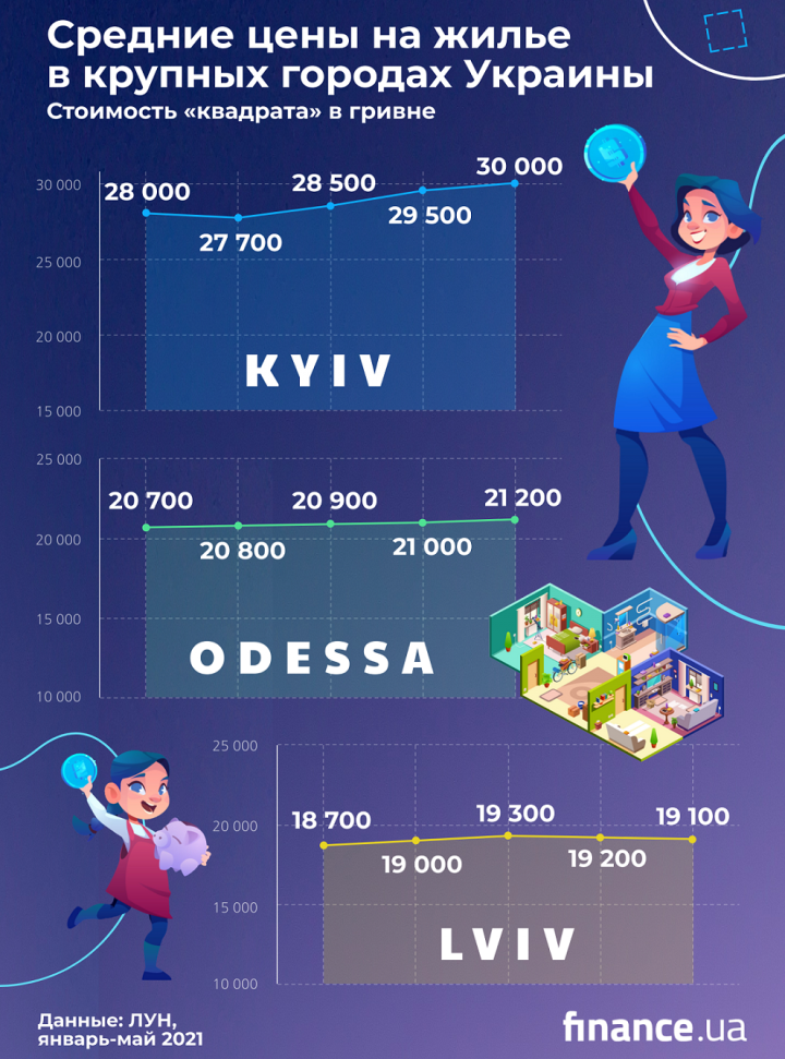 Динамика цен на квартиры в Киеве, Львове и Одессе с начала 2021