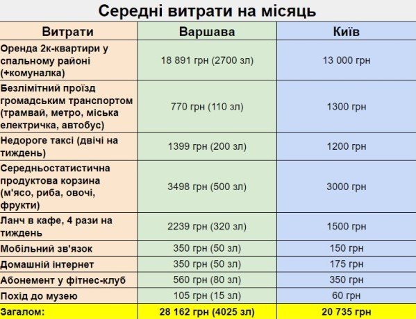Стоимость жизни в Варшаве выше на 20-25%, чем в украинской столице