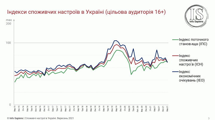 Украина. Индекс потребительских настроений в сентябре 2021 составил 69,1, что на 4,5 п. ниже показателя августа