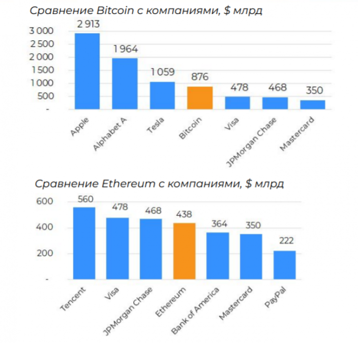 То есть на конец квартала и 2021 года крипторынок по капитализации уступает только двум крупнейшим публичным компаниям – Apple и Microsoft.