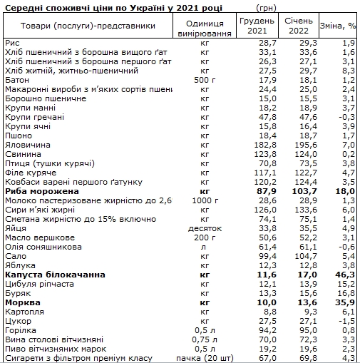 Государственная служба статистики обнародовала данные о средних потребительских ценах на товары и услуги в Украине в январе 2022 года. С начала года больше всего подорожали овощи.