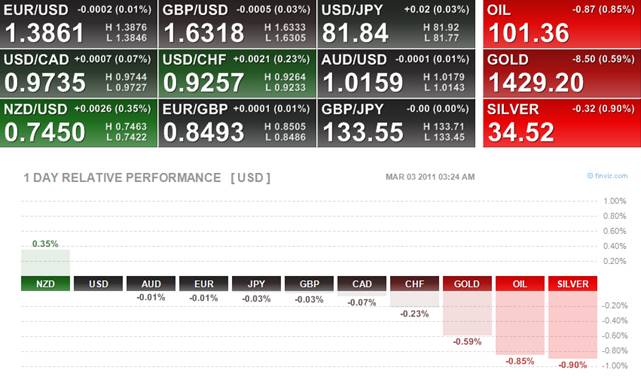 Обзор фондовых, валютных и сырьевых рынков от 02.03.2011
