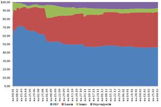 – 46,18% (62,651 млрд. грн.) находится в НБУ;