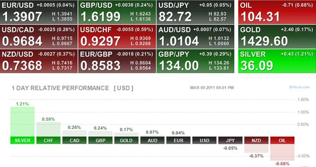 Обзор фондовых, валютных и сырьевых рынков от 09.03.2011