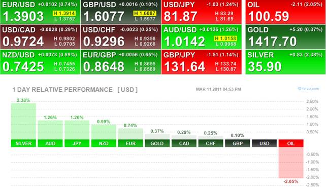 Обзор фондовых, валютных и сырьевых рынков от 11.03.2011
