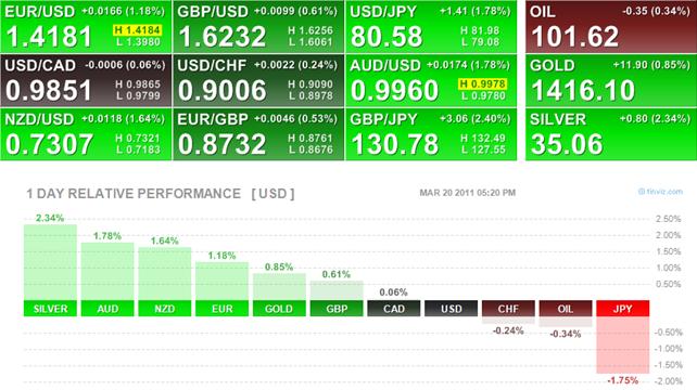 Обзор фондовых, валютных и сырьевых рынков от 18.03.2011