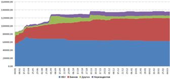 – 45,55% (62,819 млрд. грн.) находится в НБУ;