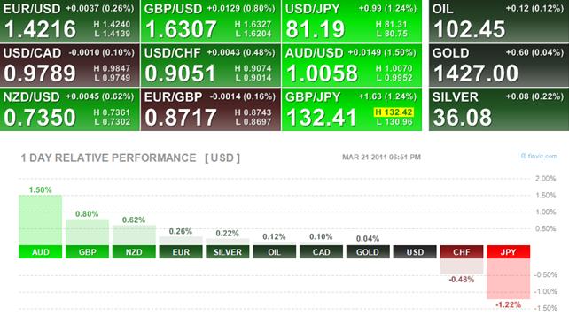 Обзор фондовых, валютных и сырьевых рынков от 21.03.2011