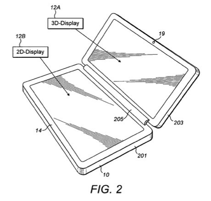 Первый дисплей, расположенный в верхней части устройства (выполненном в форме книжки), поддерживает «безочковый» стереоэффект. Второй дисплей, расположенный в нижней части, является обычным двухмерным. Устройство описано в заявке на международный патент под названием «Аппарат со стереоскопической системой отображения», поданной в 2009 г. и опубликованной в открытой базе данных WIPO.